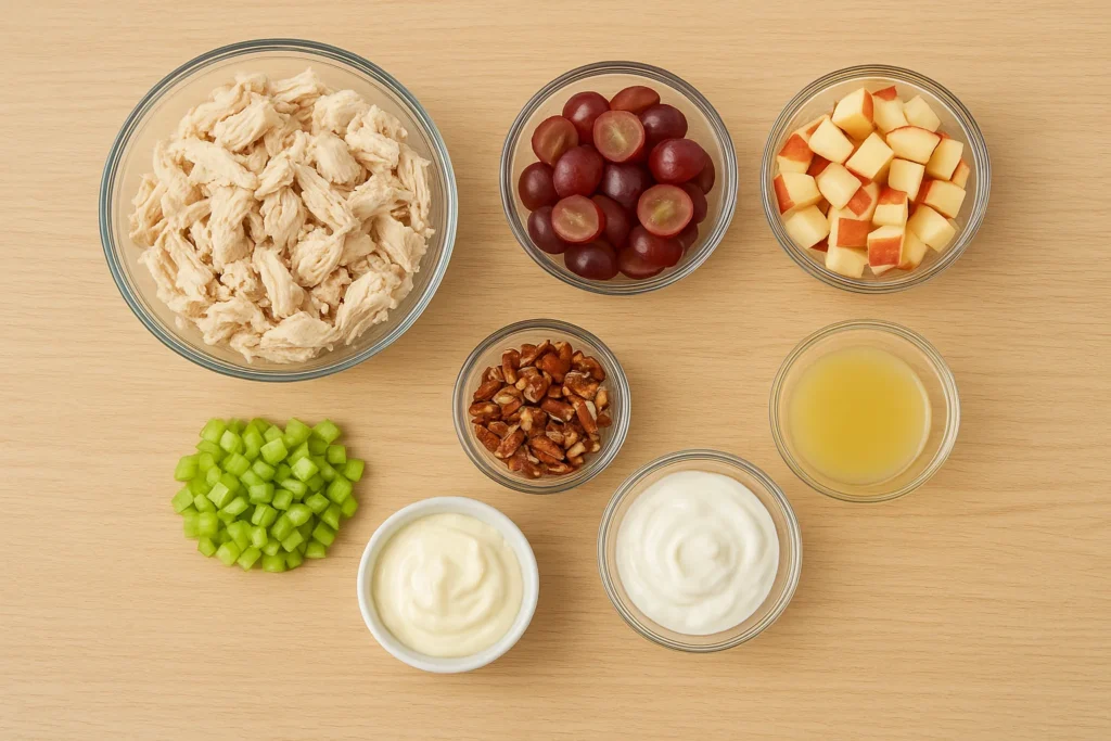 Chop chicken into even bite‑sized pieces. Halve the grapes, chop the apple, and celery uniformly. If you like a deeper flavor, toast pecans at 325 °F for 7–10 minutes, then cool them before chopping.