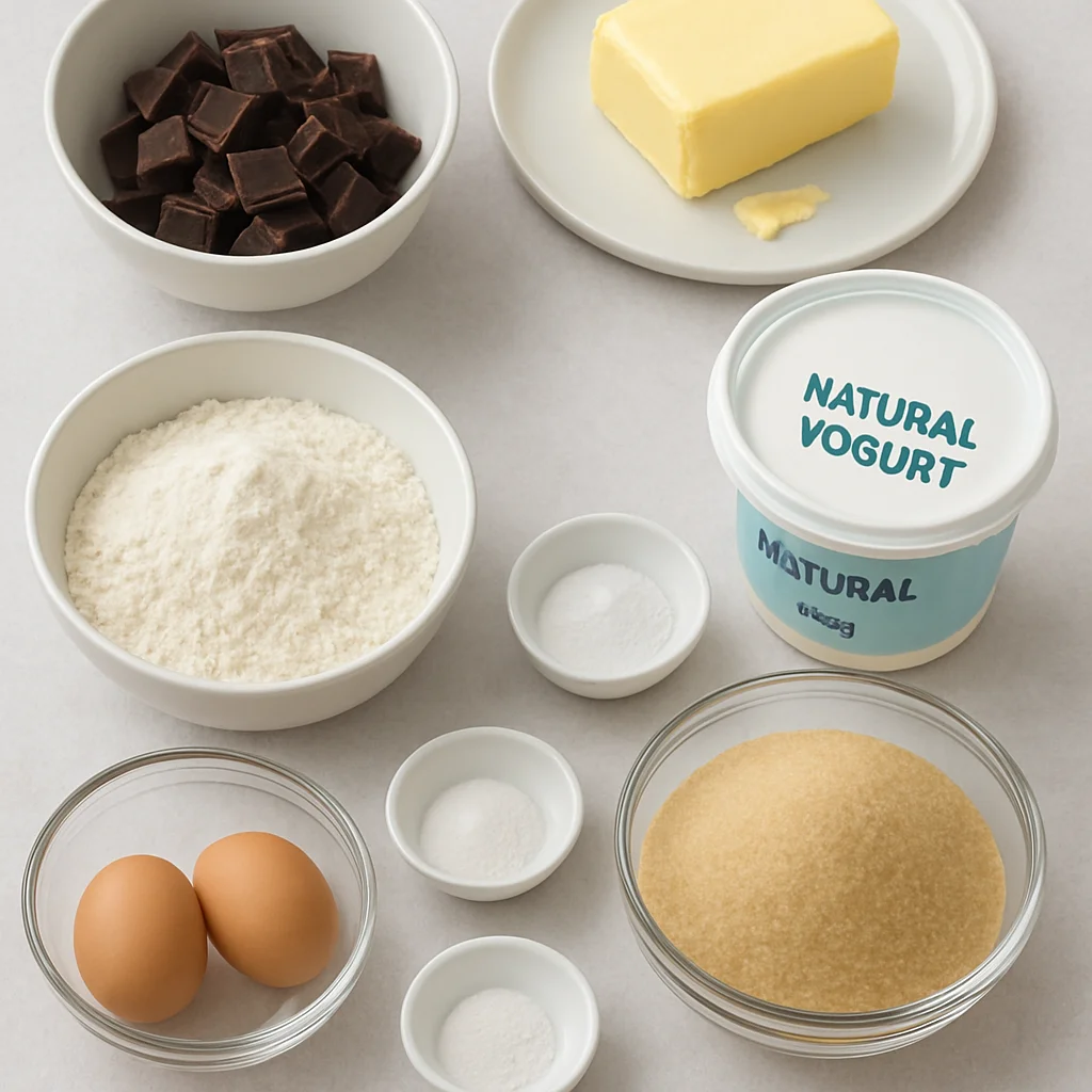 - Melt butter and part of the chocolate together; set aside. Mix flour, sugar, cocoa, bicarb (and a pinch of salt). Whisk eggs with buttermilk or yogurt.