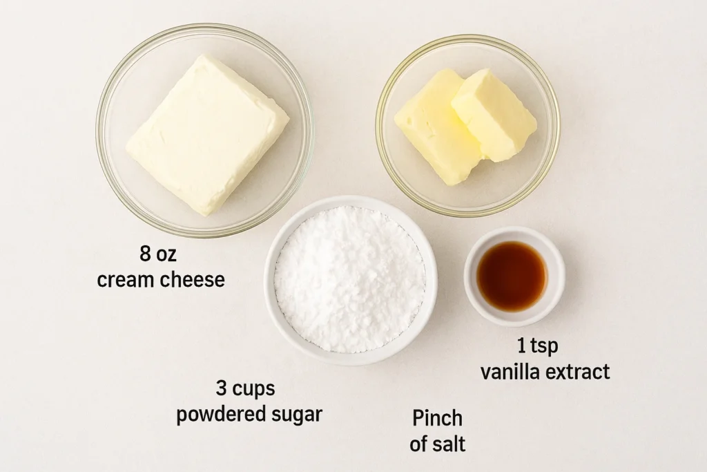While the cake cools, I beat the softened cream cheese and butter until smooth, then add vanilla, salt, and gradually the powdered sugar until the frosting is fluffy and silky.