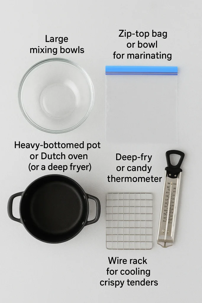 Working in batches, I fry the tenders for about 3–4 minutes until they turn golden and reach an internal temperature of 165 °F. I transfer them to a wire rack—never paper towels—to keep them crispy.